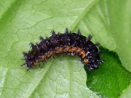 I had a good idea what was nomming the crap out of my coneflowers, and I caught one of them red-handed (black multi-footed?). From the looks of my flowers’ leaves, I do not predict a shortage of Silvery Checkerspot flutter-guys this year.