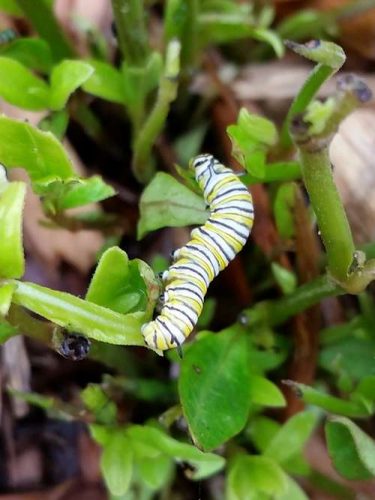 Bebe Monarchs are growing. I didn’t count, but they’re still doing okay so far; the milkweed is growing faster than they can eat it (for now).