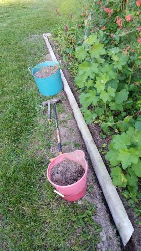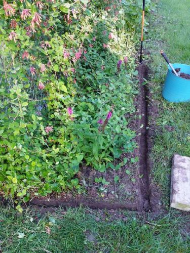 On Saturday morning, I finally broke down and started the trench for the fence flowerbed border.