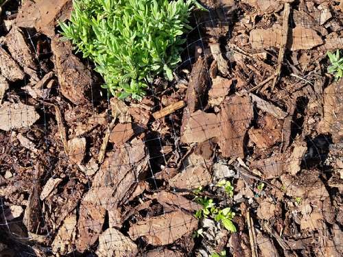 First mulch, then the Bird Block. It’s nearly invisible even from a few feet away.