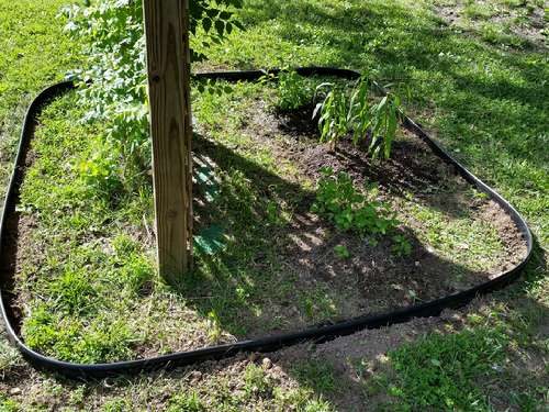 I took the afternoon off yesterday, and went to Walschwitz. All they had left was four 30′ rolls of edging, so I bought them all (and also some Bloom Booster for my hanging baskets). It was an utterly beautiful day; not really too hot, even right in the sun. I got the edging installed on the other side of Thug Lyfe.