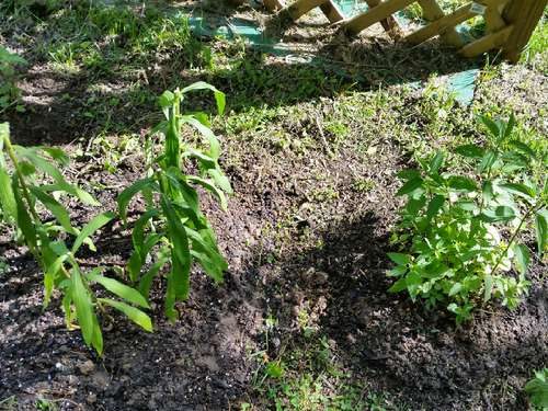 Also dug up a few goldenrod where it was starting to spread in Sarah-Flah’s Giant No-Mow Flowerbed. I thought about Disobedient Plant, but I don’t think there’s enough sun. I wouldn’t have thought there was for goldenrod, either, but the clump growing over by the “steps” to the wood tray feeder would beg to differ. Anyway, I cut it short because it would only have wilted anyway. I think it’ll be okay, and now the stinging nettle has a friend.