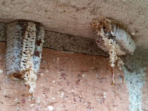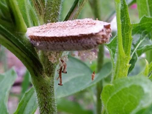 Little dudes were still hatching out, but it was getting late, and I couldn’t wait for them. That wall is Spider Nirvana, and I didn’t want them to die before they’d even lived a day, so I carefully scraped the oothecae off the concrete, and put them in the Horseshoe. Wedged into coneflowers by the already-hatched bit, leaving the unhatched bit free so they could dangle as they emerged. I wanted them near the flowers because of the small insects attracted thereto.