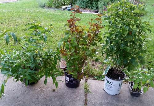 So…on Saturday, P and I were going to Tractor Supply; he wanted to stop in at work for a few minutes, but didn’t want to make a special trip, and I’d never been to TS before. Anyway, we ended up at Lowe’s, and after I found Blue Muffin Viburnum, Amber Jubilee Physocarpus, and (unnamed, apparently plain ol’) Diervilla, that’s as far as we got.