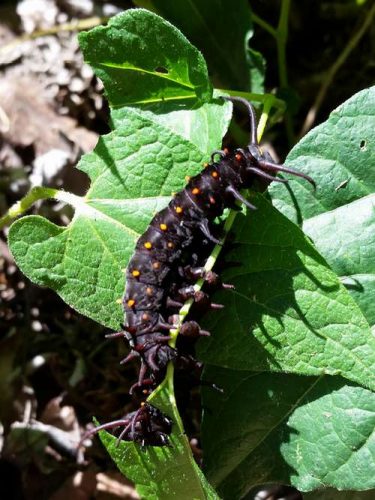 My little “Snakeroot Swallowtail” caterpillars are growing. A week ago, they were itty-bitty, but now they’re fat little eating machines.