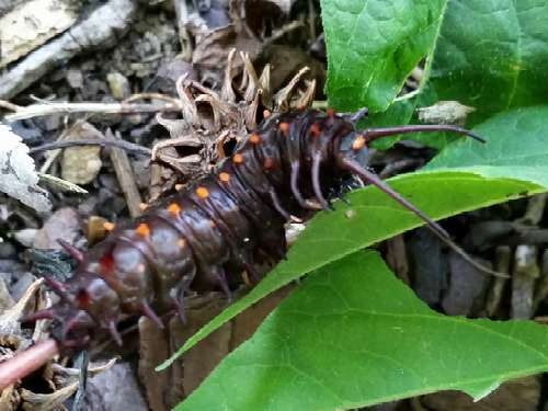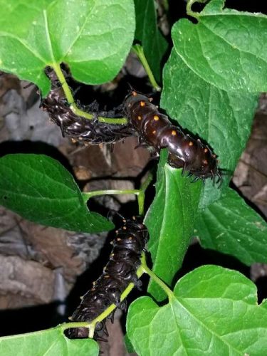 Well, almost empty; a couple of the caterpies aren’t big enough yet, but at the rate they consume snakeroot, I don’t expect it’ll be long. I knew they were close because they were getting so big and very fat, but it was interesting to watch them at the actual time they decided it was time to go become flutter-guys.