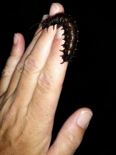 He crawled onto my hand, so I took him in to show Flutter-guy Deh-day how big and fat they’d got.