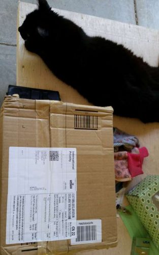 I didn’t get to work on the Turtle Power Pool last night because when I got home from work, Boo was guarding the package containing the fiercely expensive cat door from the UK.