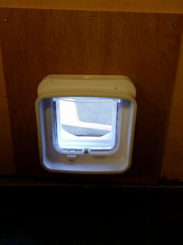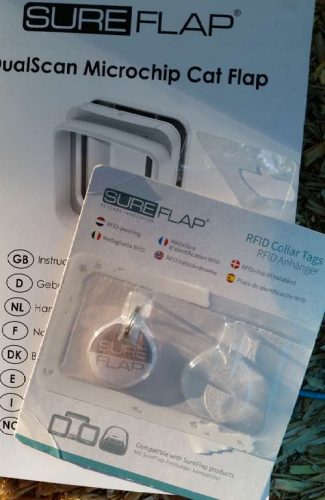 I’d thought there was one tag with the door, but there was not. No big deal since I’d got two packs, so I still had one left over for the first time (of what I’m sure will be many) that one of the cats loses his tag and can’t get inside.