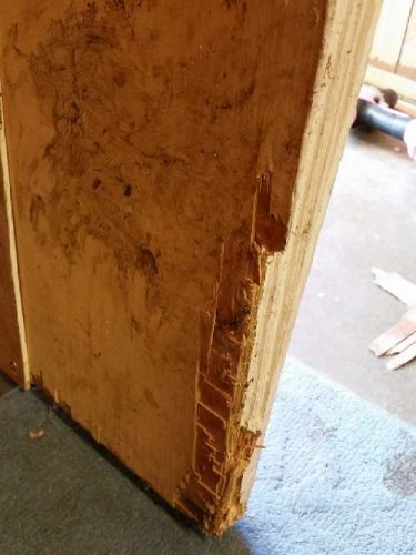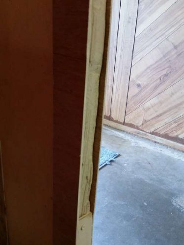 Door was not easy to work with because I could swear they planed it with a fucking AXE. I had to get creative with some 1/4″ plywood and a leftover piece of 1/2″, but the door does close, and there’s no place for little trash panda fingers to enter. I just cut off the ragged panelling and slapped some 1/4″ plywood on that spot. Not pretty, but hey–it’s the garage, and since I’d taken an afternoon off to do it (too beautiful a day to be in an office), I damned well wanted it finished. For the record, thank Christ I own a belt sander because trying to cut something to fit the fucking mess they made of this door would have been impossible.