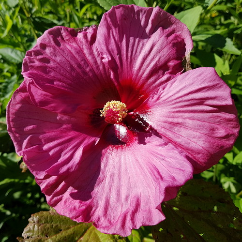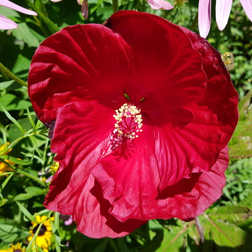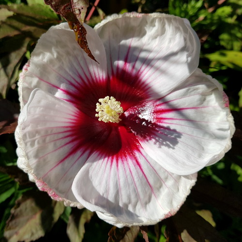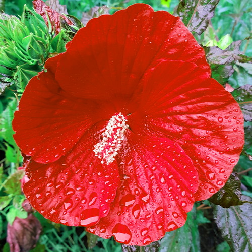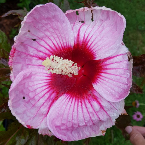 Bloom is a little deformed, but I think it’s Cranberry Crush. God, I love hibiscus!