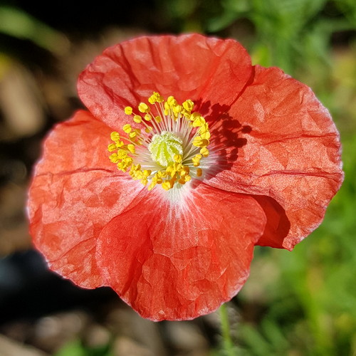 This is a flower from my Save The Bees “floor sweepings” seed pack. I dunno…a poppy, I guess? Whatever it is, it’s cute.