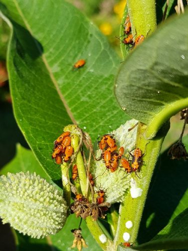 I’m supposed to kill milkweed bugs because they can make seeds less viable, and can transmit diseases, but they’re just so fucking cute that I can never make myself do it. Milkweed longhorn beetles, yes, because they eat leaves and take away potential Monarch food, but not these little dudes.