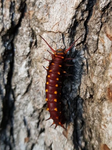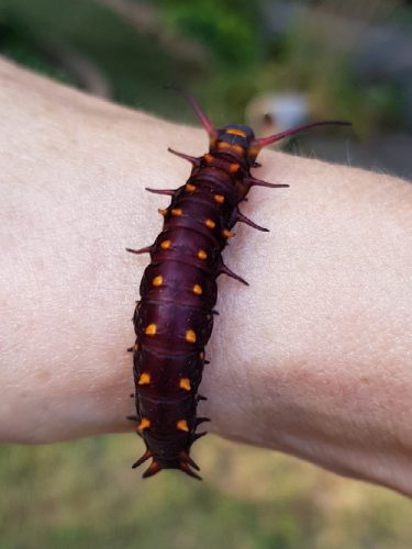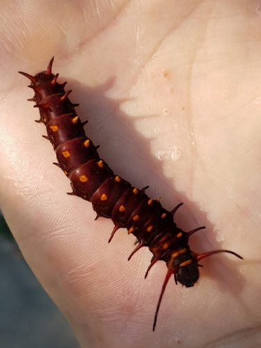 FINALLY! I didn’t even notice these guys until I found this one, trundling across the dying grass in search of “up” to pupate. For the first time in…ever, I have PIPEVINE Swallowtail cats!