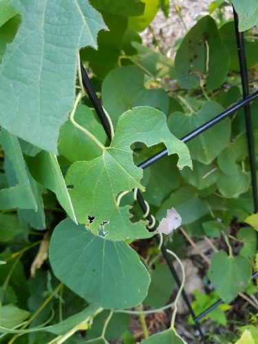 They did some serious nomming, but I’d been so busy trying to keep everything watered enough to stay alive that I didn’t notice. The pipevine is on irrigation, so it didn’t need my attention, at least not directly.
