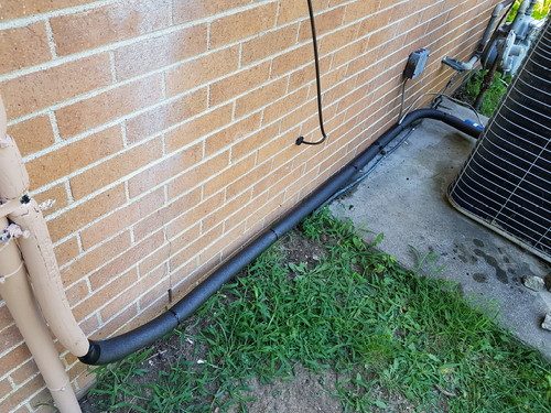 Not that it’s terribly important, but I did it a couple of weeks ago, and it made me glad I never throw away leftover material. I had bought pipe insulation to make floaters for pots and a corral for floating plants in the pond a year or so ago. I had some left over, but didn’t toss it, and it was good that I didn’t because P had asked me what to get to replace the ratty, holey insulation that wasn’t “insulating” much at all, and after I’d finished, I had less than a foot of material left over. Perfect!