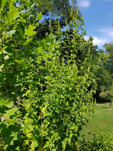 Disobedient plant, doing quite well, especially considering how little rain we’ve got this summer, and how infrequently I actually water it. Bees like this stuff very much!