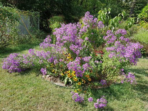 I went home at lunch to turn on the irrigation so I could have the hose free when I get home. P had mentioned the asters I got from J earlier this year, and for him to notice, they must be remarkable, indeed! These are in bloom, a few more NE asters are in bloom, a little boneset, goldenrod, and blue mistflower. After the god-awful dryness, I have no idea how, but I’m glad for the late-season nectar.