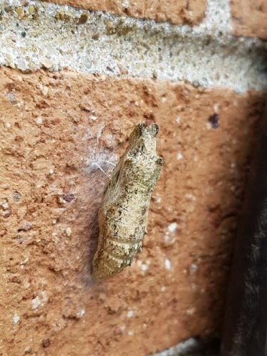 I had roughly 75 Pipevine and Snakeroot Swallowtail cats this year, and I did my very best to make sure they got enough to eat, and found a safe place to pupate and spend the winter. Of the 75, I’ve actually found…one. When I was uncoiling the hose to water yet again, I noticed this little dude had chosen a potentially dangerous spot. I think I’m going to try to move him somewhere safe for the winter.
