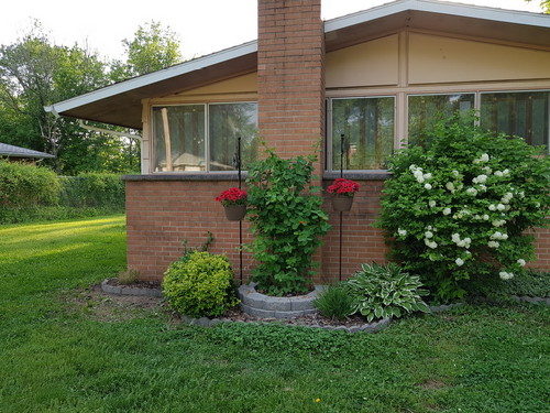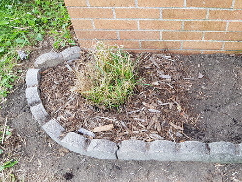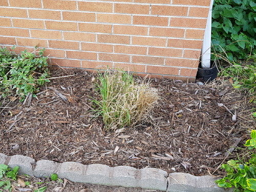 Oh my GOD, what a fucking job it was to get that shit out of the ground! I didn’t mind the look of the maiden grass too much, and had it been well-behaved, and not made me itch fiercely every time I so much as brushed by it, I probably would have left it there, even if everyone and their goddamned dog has it, and nothing uses it for food, and it was a huge pain in the arse to cut back in spring. That was not the case, though, so I got out my shovel, and I made it…go away. I replaced it with the two pots of Dacotah switchgrass that I had grown from seeds. They’d overwintered in their pots, and looked a bit worse for wear, but I think they’ll live. They look so small compared to the space the overgrown ugly Miscanthus had occupied. The vinca is next on my shit list, but that’s for another time.