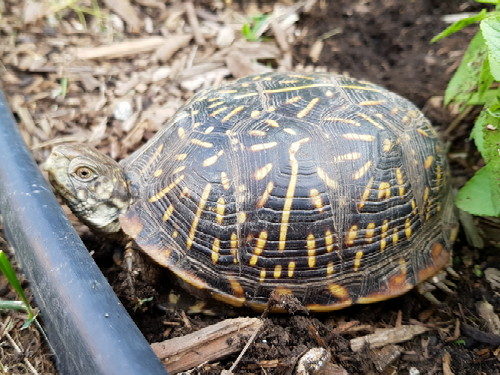 I’m always happy to see “my” turtle. I know it’s Roxy for sure because I got a better picture of her this time. Same chip out of her carapace; just a little more worn than last year.