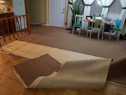 Starting at the easiest spot to lift the carpet, between my office and the front room, I began to pull.