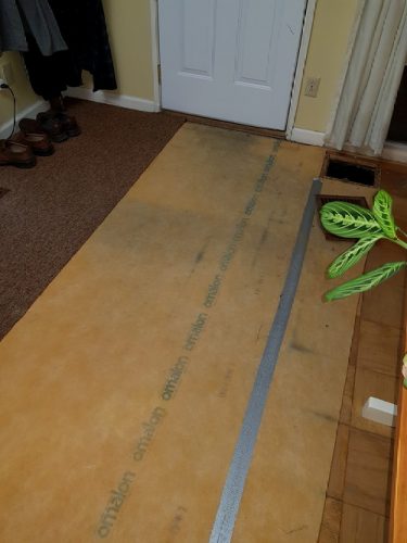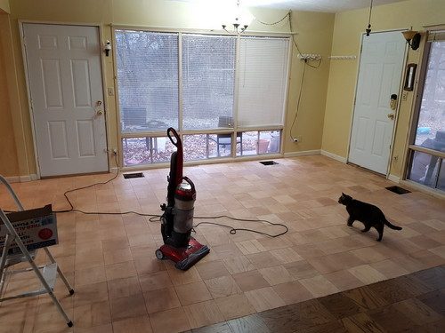 When I got over by the door, my concern was that there would be water/mud/abrasion damage to the flooring, but it turned out that it was okay. I did take a deep breath and offer a silent prayer to the flooring gods before pulling up this foam, though!