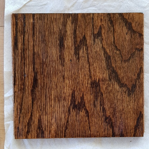 Two coats of Provincial and three coats of poly, close up. I quite like this.
