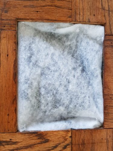 I couldn’t find my tulle, so I split quilt batting in half to make dust covers for the furnace registers. I also had the heat turned down to reduce the number of times it would come on, just in case.