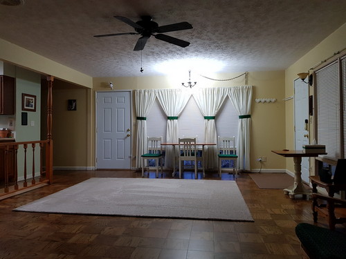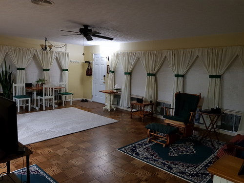 12-15-2019 – At long last…I’ve FINISHED, and for the first time since February, I have curtains on the north windows! I had purchased three extending rods, thinking somehow that they’d work to replace the cobbled-together mess that they’d had “holding up” (sarcasm quotes) those curtains, but then I realized there are five windows, not six. It worked out perfectly in the end, though, because with a hacksaw and some ingenuity, I made one rod, and it’s nice and sturdy, unlike the seven or eight 3′ rods they’d half-assed stuck together. The TV stand still needs to be replaced, but that’s one of my plans for the Christmas break.