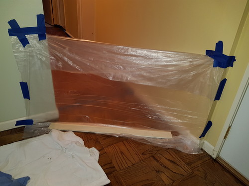 I didn’t take any pictures of the third and fourth coat that I did today because I had too much shit to do, and I was tired, but they looked pretty much the same. It’s clear polyurethane, after all!
