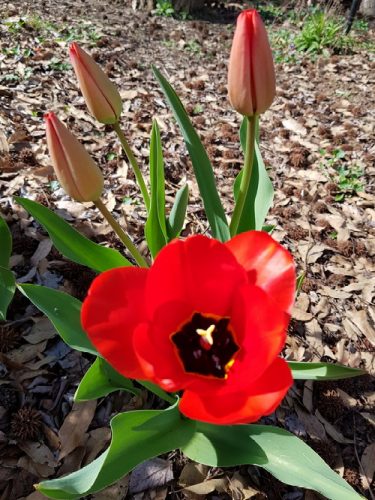 The old lady’s tulips bloomed, at least one type did. The ones with the darker leaves are just leaves again. I’ve often thought about moving them, but I think I’ll leave these ones where they are, at least for the time being.