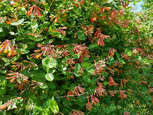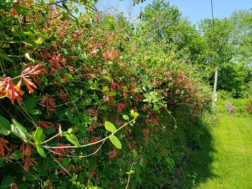 Coral honeysuckle on the fence. It’s soooo pretty when it does its big bloom in late spring. No wonder the MLBs are doing their mating dances; Parview is a pretty good place to live if you’re a hummingbird!