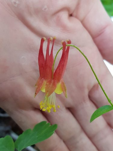 The last remaining Canadian Columbine. I really need to get those seedlings and that one plant removed from the patio cracks to somewhere they can grow better.