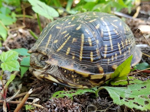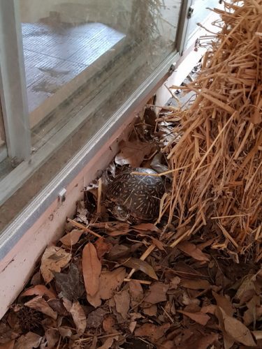 The next day, I was walking around the back yard, and apparently, Roxy decided her front yard adventure was over, and headed off to the back yard again. God, I love that turtle; she’s just so…Roxy. She kind of reminds me of OK, the way she so deliberately goes about her business and just wants everyone to fuck off and leave her alone.