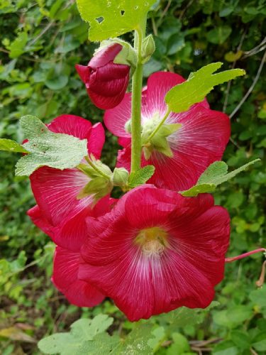 Pink hollyhock. I think this is the only one left along the fence line. Honeysuckle throws a lot of shade, but that’s okay because it’s the plant I really want there most.