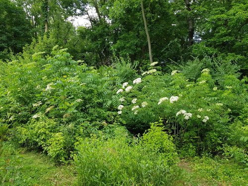 Elderberry doing nicely, well-guarded by an army of catbirds. The aren’t going to miss a single berry because they sit there and watch for the fruit to ripen!