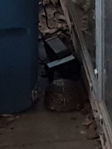 I laughed and ignored her (just as she likes it!) then went inside. P was outside, and sent me this picture with the text, “Ran into a roadblock. She might think it’s a relative.” I LMFAO; it’s the plug for the Insignia speaker on the patio.