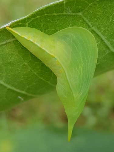 Here he is as a pupa. Looks like a very weird leaf, and I think that’s probably his intent. 08-06-19