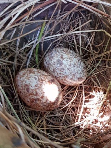 2019-05-24 – I was pleased to see two eggs from Mr and Mrs C this year. I found the nest on 2019-05-20.