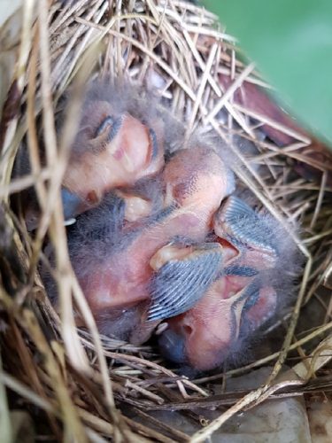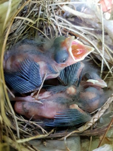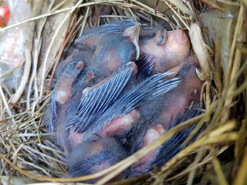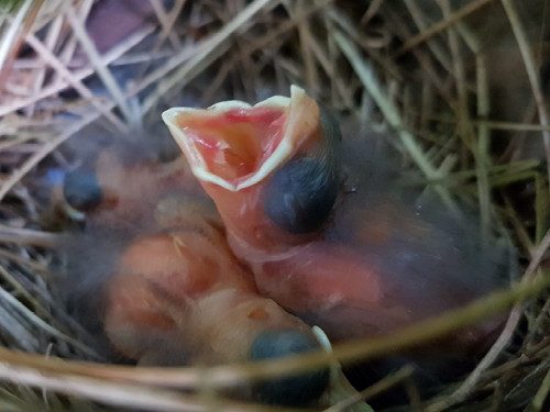 2019-06-10 – I accidentally had the flash on, which I usually don’t because I can’t imagine they like it, but their eyes are open, and they’re not shy about letting me know that I’m a giant disappointment because I don’t have food. Still ugly as a can of toads packed arse-up, but growing fast!