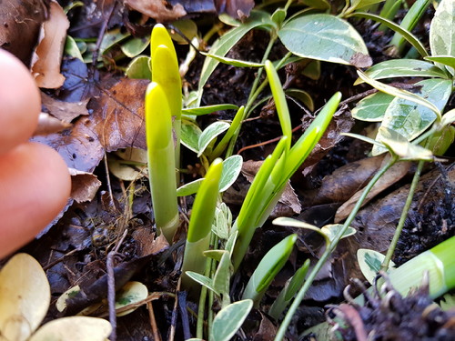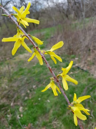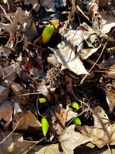 C has a greenhouse, and she has some dwarf citrus trees that she’s picked up over the years on trips to Florida. Those trees don’t really get cold temperatures because they’re in a heated (wood burner that creates steam to heat) greenhouse, so once the days start getting longer, they bloom. Problem is that because they bloom so early, there are almost no bees around to pollinate them because it’s not warm enough. This year, though, I had those two full mason bee houses that were easily portable, so I brought the blue house in for C yesterday. The bees in the yellow house that I just put out on the patio won’t emerge from their tubes for at least two or three weeks because it’s still too cool. In a warm greenhouse, though, with the days getting longer, they should emerge much sooner; in time to pollinate the citrus trees. That’s the plan, at least.