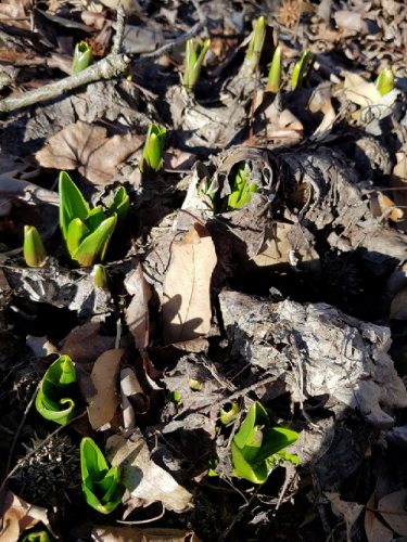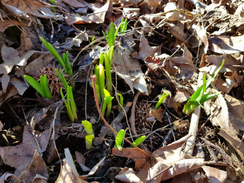 C was at her desk yesterday, and had told me she’d seen a honeybee flying around her office. Possible–it’s been sunny and not particularly cold the past few days–but I thought it was more likely that one of the mason bees in the house that was sitting on the counter in her office had responded to the warm indoor temperatures and made his great escape. She said she didn’t think so because the bee looked too big for a mason, but I still thought it probably was.