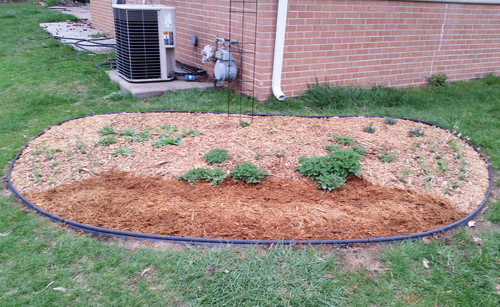 Not nice enough for my “fancy” flowerbeds, but certainly good enough to keep the weeds down around the cosmos at the back of the lawn, and it was kind of fun. In two hours, I cleaned up the perennial beds, and most of the Honeysuckle Horseshoe. What would have been a big pile of stuff that would take ages to decompose is about 1/3 of a kitchen trash bag.
