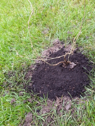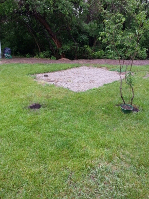 I finally sunk the ring around Miracle Tuliptree and put in some mulch.