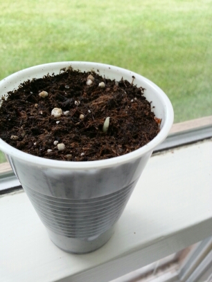 I dug this bed in the morning, then planted it post-mowing and nap. In back, it has: branching sunflower and standing cypress, and a few cardinal climber off to the side. In front, Chilean glory vine, Scarlett O’Hara morning glory, and a few “free gift wildflower mix” (all three sunflower seeds removed) over to the side.