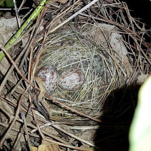 It’s not visible from the outside–I stuck my phone amongst the branches–but Onje doesn’t need to see what he can smell and hear is there. I cut some branches off my rue and broke/crushed them (god, rue stinks), and hopefully, he’ll stay away. I’ll bring out the big guns in the form of ghost pepper powder if I have to, but I’d rather not do that to Onje if it’s not necessary. If I’m outside, there’s always La Chancla! Anyway, we’ll see, but she picked one hell of a spot for a nest!